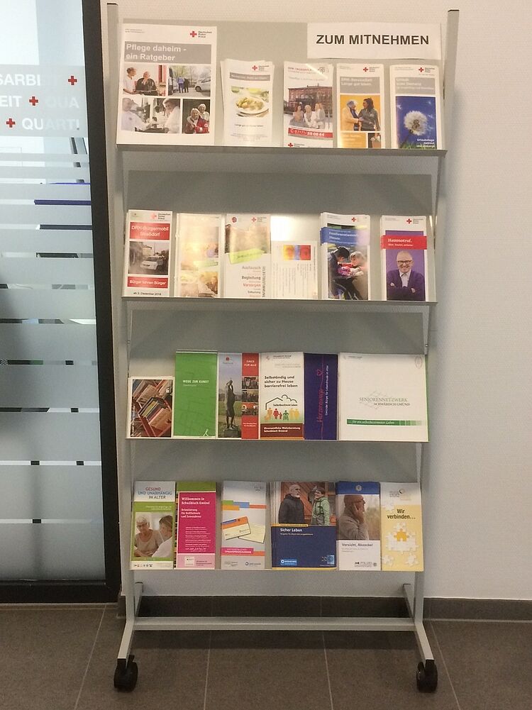 Im öffentlichen Eingangsbereich des DRK Senioren- und Dienstleistungszentrum, neben dem Büro der Quartiersarbeit und gegenüber der Begegnungsstätte, steht seit Kurzem ein Regal mit allerlei Informationsmaterial. Z.B. zu Dienstleistungen des DRK, zum Förderverein Straßdorf, der katholischen Bücherei und zum Seniorennetzwerk Schwäbisch Gmünd. Gerne dürfen sich Interessierte Prospekte kostenlos mitnehmen.
