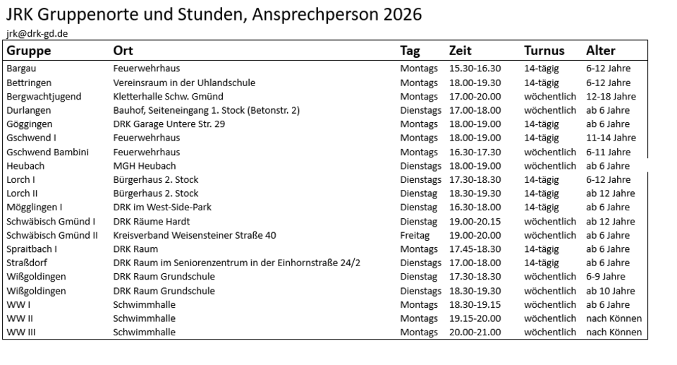 Foto: M. Andreya / DRK e.V.Hier findet Ihr Informationen zu Veranstaltungen des Jugendrotkreuzes im DRK-Kreisverband Schwäbisch Gmünd e. V.. Außerdem erfahrt Ihr Neuigkeiten schnell und aktuell. Für alle Neugierigen gibt es Informationen und Ansprechpartner. Gruppenleiter können Ihre Gruppen für die Veranstaltungen Online anmelden.